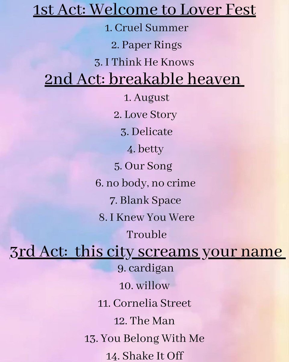 Taylor Swift Lover Fest Setlist Fan Made Youtube